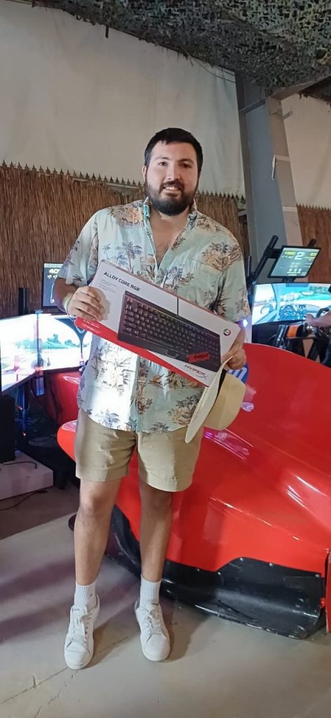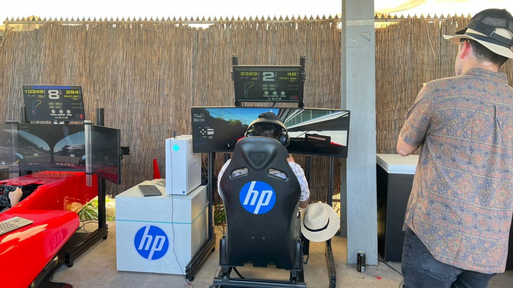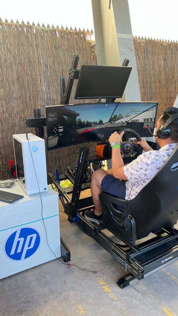 Además, marcas como Tanqueray, Red Bull y Dolce Gusto estuvieron presentes, aportando sus sabores y energía a la jornada. A esto se sumó la participación de HP, que animó el evento con un concurso en su simulador, donde tuvimos un ganador que se consagró como el más rápido de todos. Todo acompañado de unas ricas pizzas, hamburguesas, papas fritas o shawarmas que se podían disfrutar para comer.
